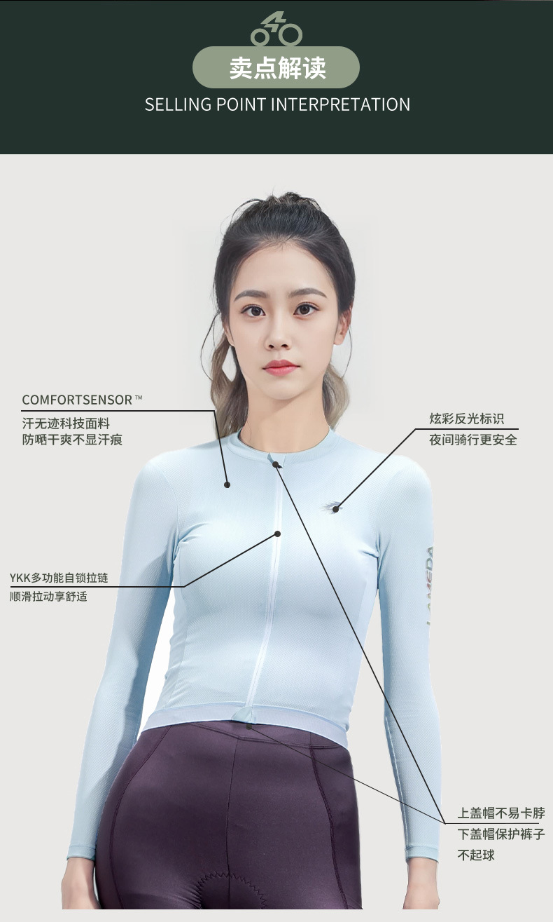 兰帕达2024春季新款高弹修身女款骑行上衣无汗迹公路车排汗骑行服